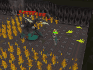 This tracking fire follows the player’s movement, and travels significantly faster the further the player is (or if they start running). Turning off run and walking in a line as the fire trails is the best course of action. Getting hit by any of the fires will result in the player taking up to 25 damage, followed by a subsequent bleed of 5 damage for 5 hits. The Hydra will not attack for roughly seven ticks after the tracking fire is launched.