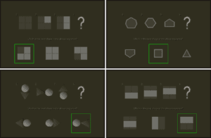 The door that leads to the central room will be locked with a simple pattern puzzle, which can be one of four types and must be solved in order to pass through. The solutions to all types of door puzzles are shown here. Keep in mind that the answers shown here are always given but may not be in the same order each time.