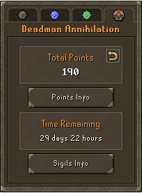Of course, the points that you earn will carry over to the main game where you’ll be able to trade them for brand new cosmetics! These are all unlocked in the form of tradeable items, which also function sort of like a permanent unlock. For example, if you manage to lose your crystal armour recolour, you can visit Nigel in Lumbridge with another crystal set and recolour them to the Deadman: Annihilation theme for free!