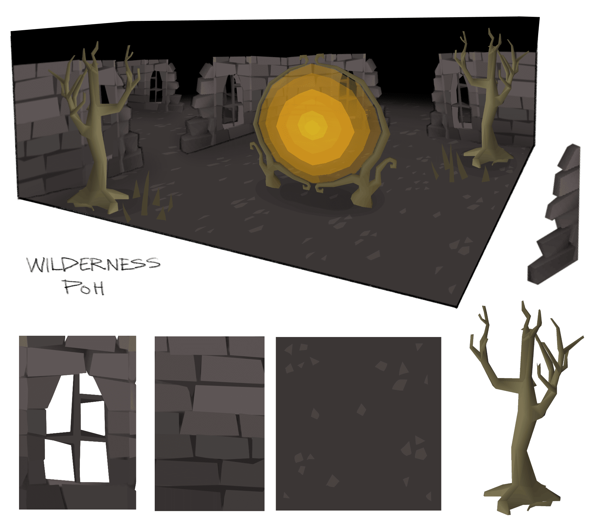 Question #1: Should we add the Wilderness-themed POH Kit as a reward from Deadman: Annihilation? This would be a toggled, tradeable unlock, purchased with points earned during any Deadman Mode event.
